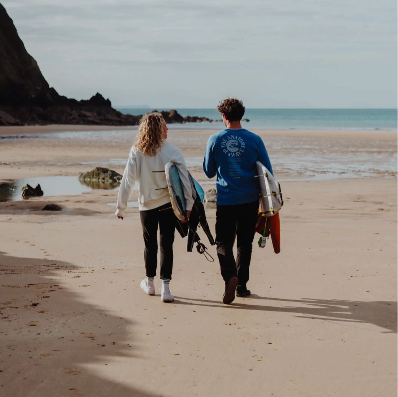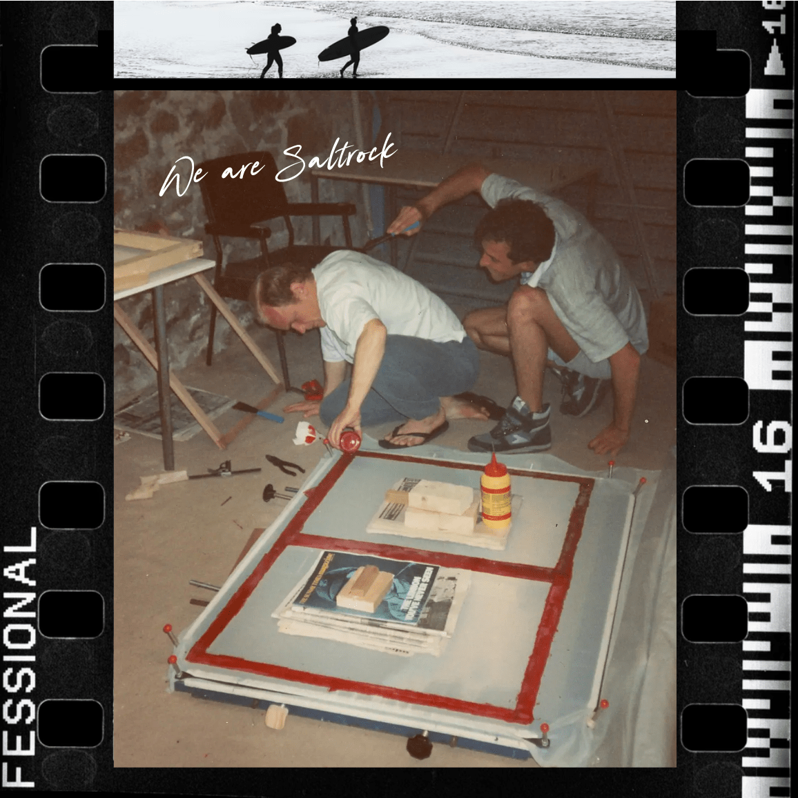 Angus and Ross loved the life in Cornwall but soon grew short of funds and decided to put their artistic talents to work. With a printing screen made from scraps they’d begged, borrowed and salvaged and a homemade blackout system from tape, nails and a Salvation Army rug they started printing original, surf-inspired designs on tshirts and selling them from the back of their Austin Allegro. They named their new brand Saltrock, after their favourite surf break back home in South Africa.