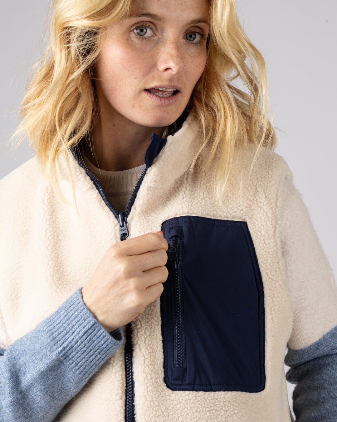- Sherpa fleece outer -1 contrast patch pocket on chest with zip opening & 2 side open pockets