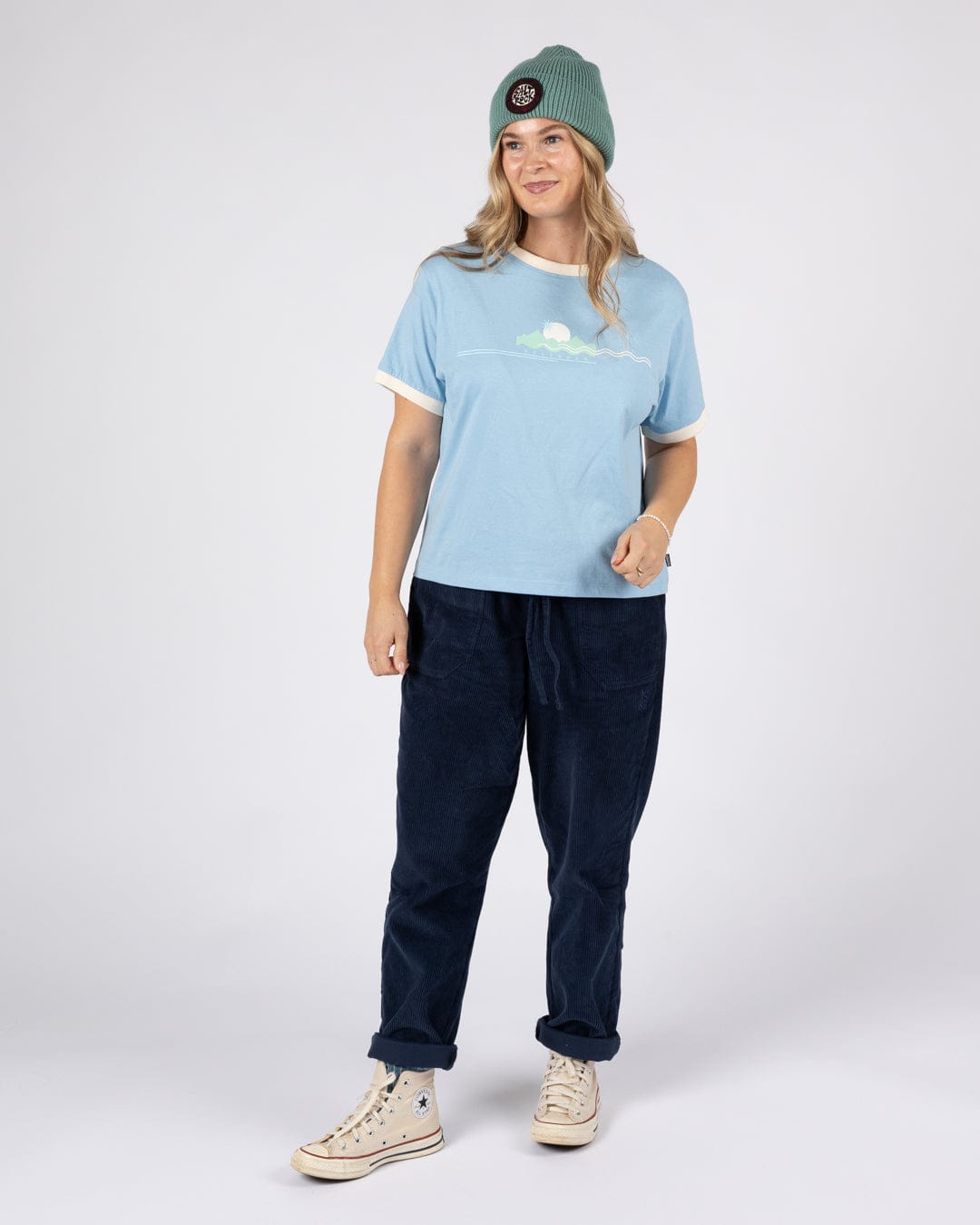 Horizon Stripe - Womens Oversized Short Sleeve T-Shirt - Light Blue