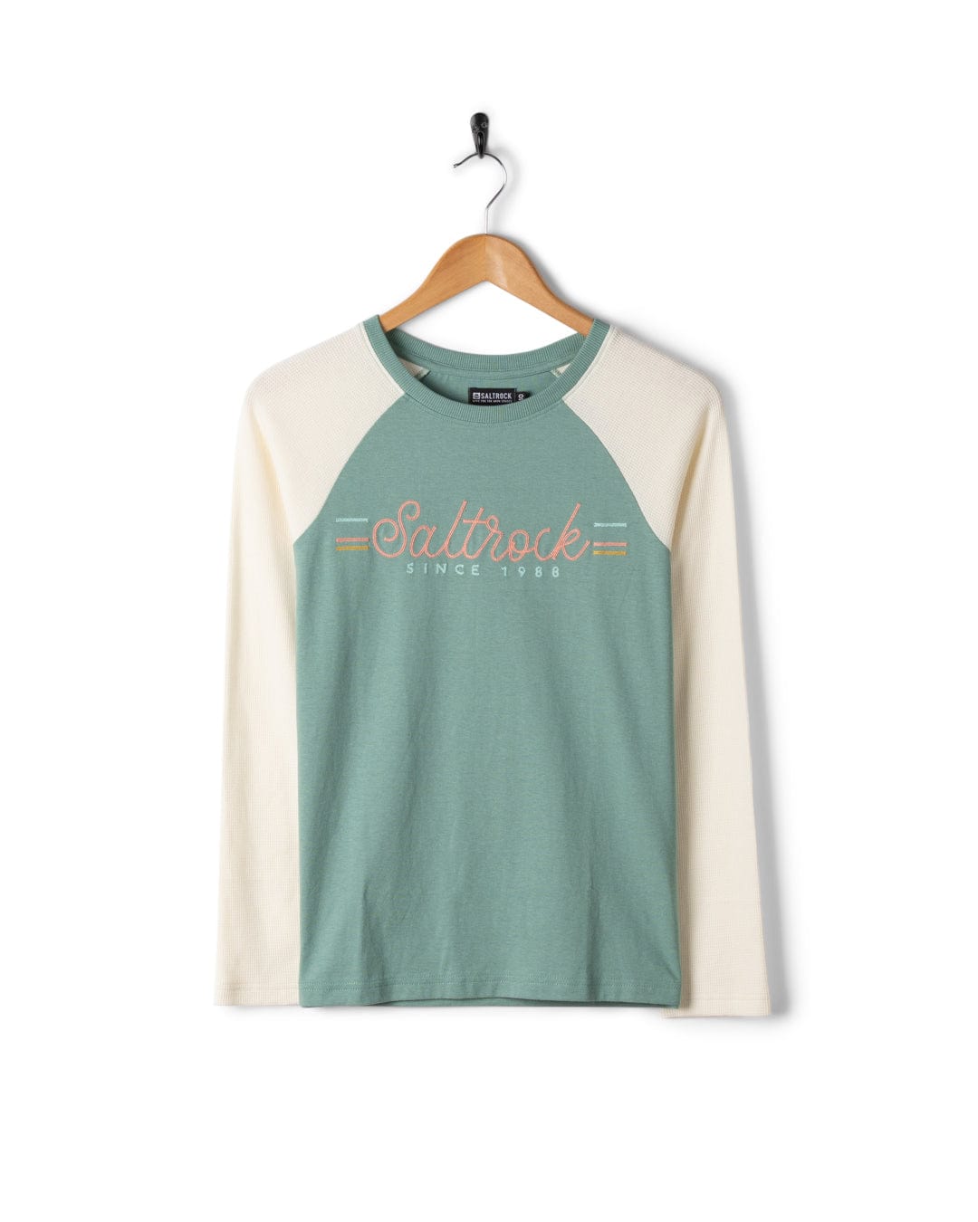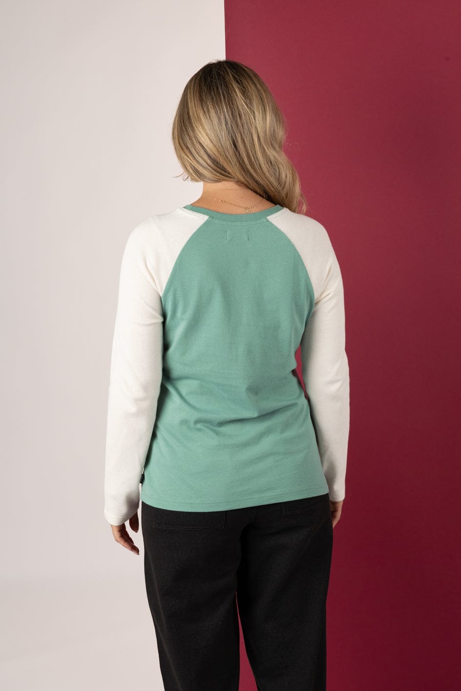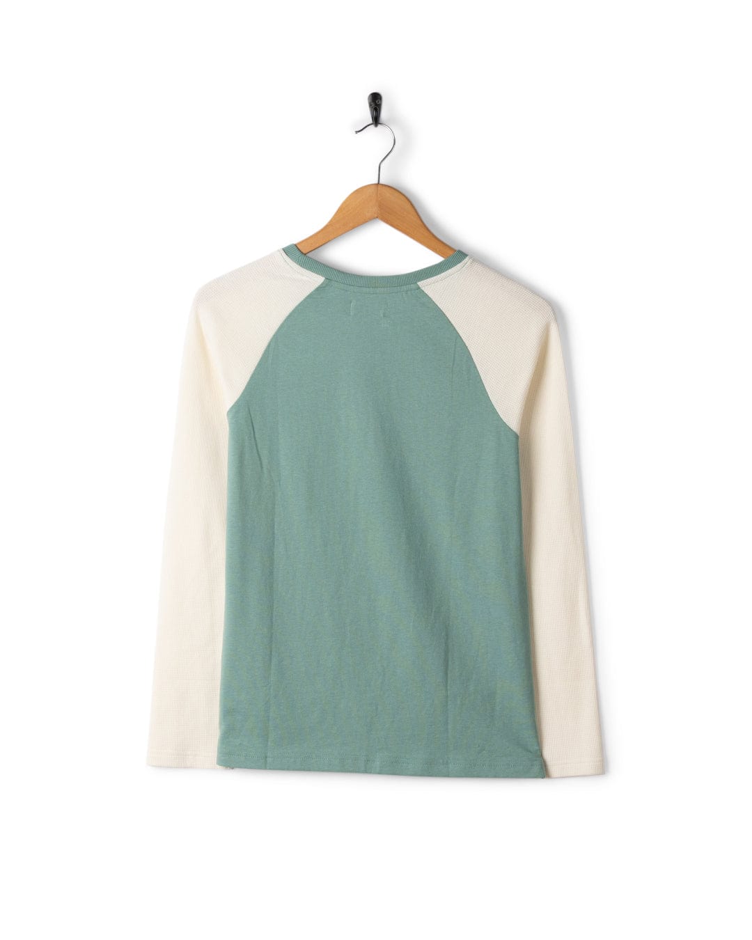 Links Waffle - Womens Raglan Long Sleeve T-Shirt - Blue/Cream