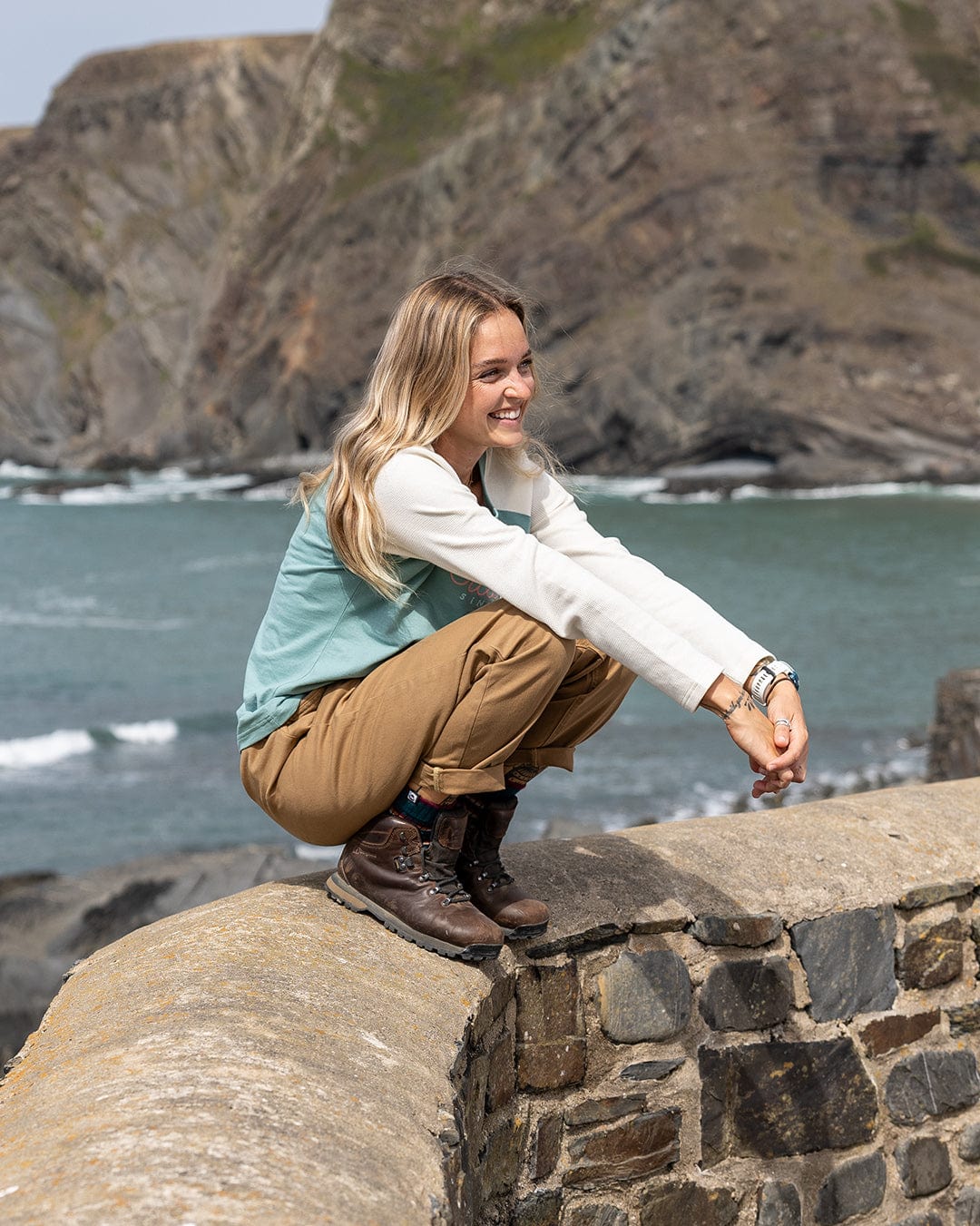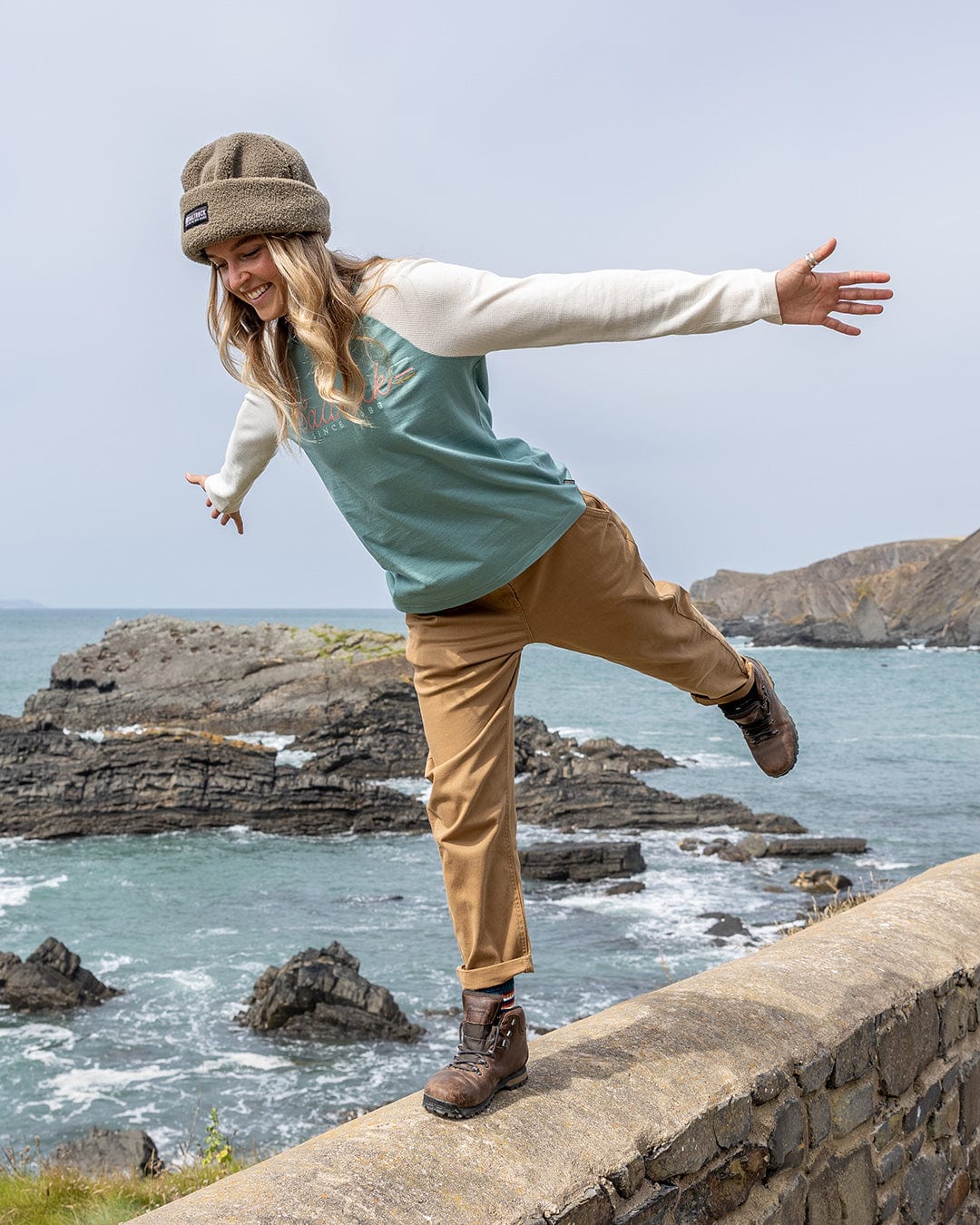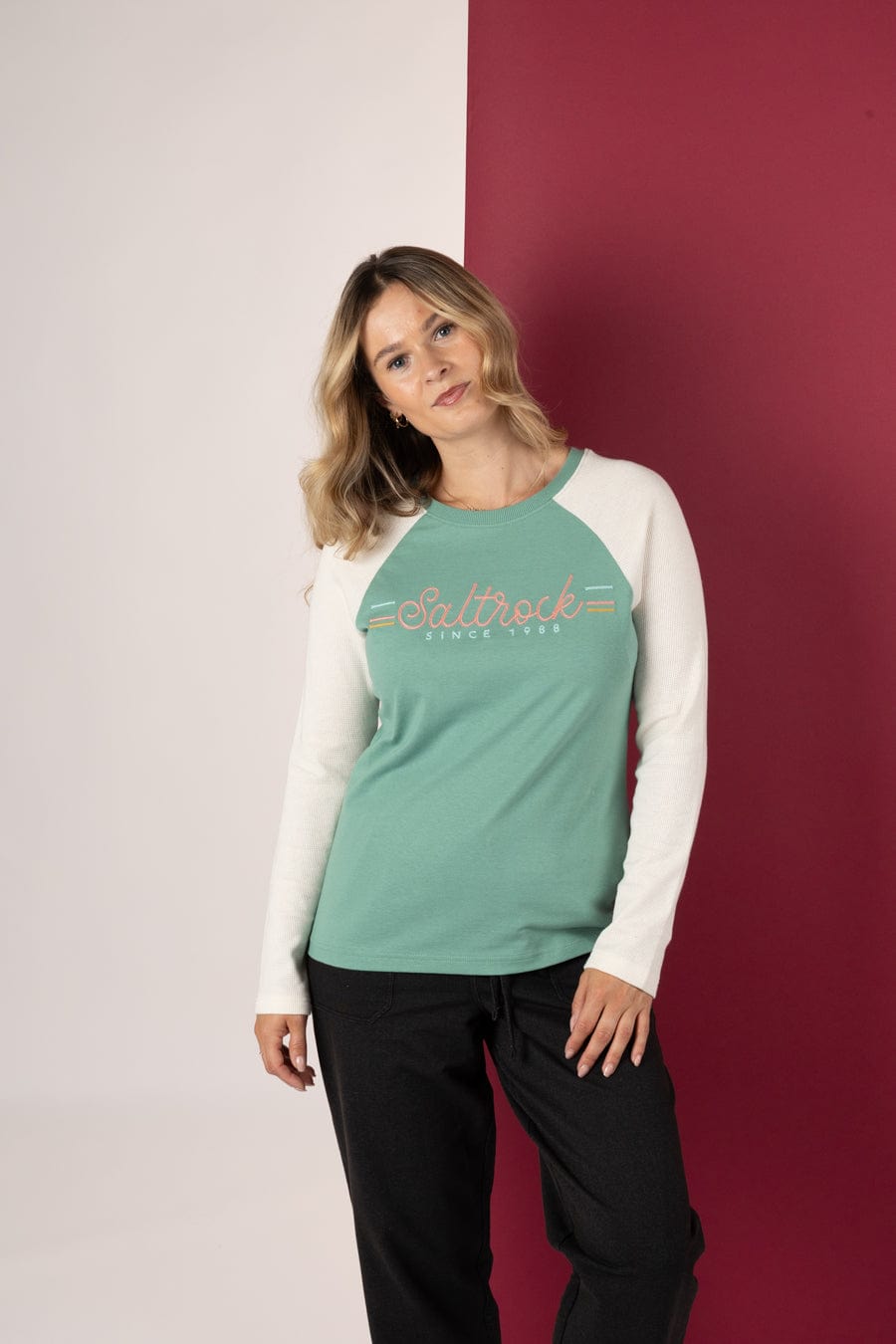 Links Waffle - Womens Raglan Long Sleeve T-Shirt - Blue/Cream