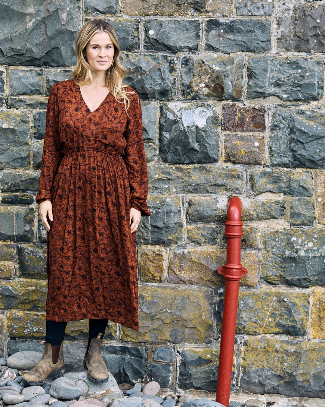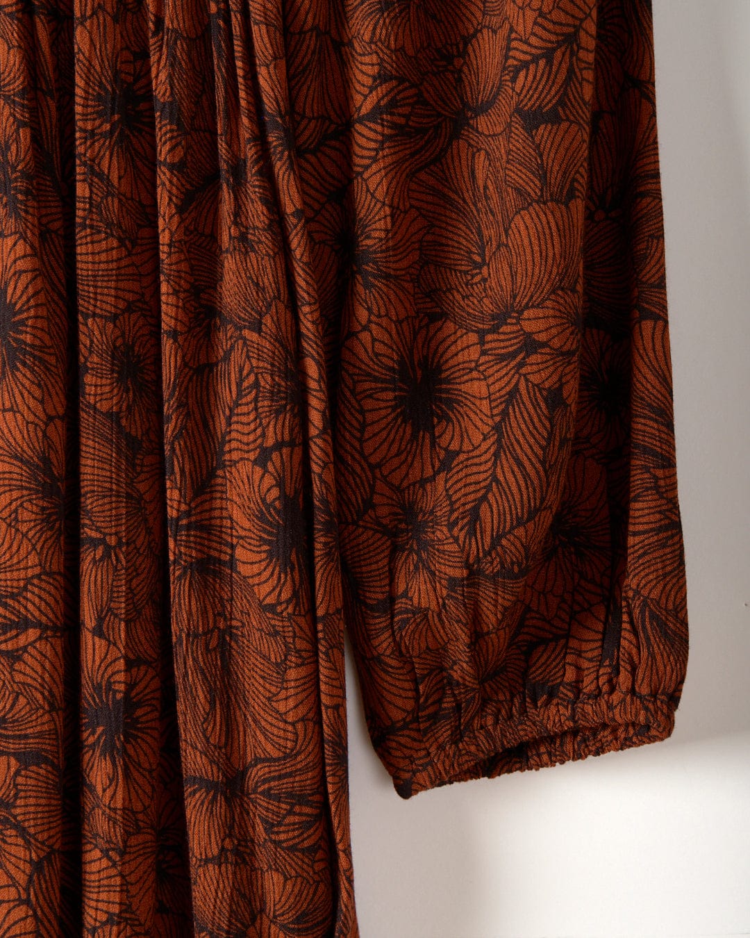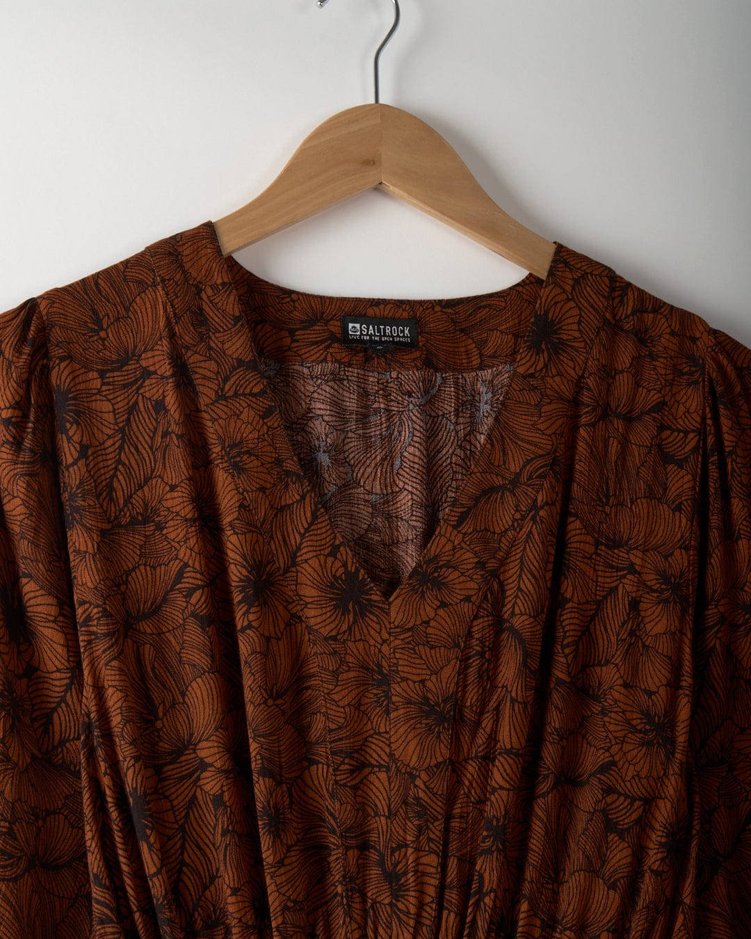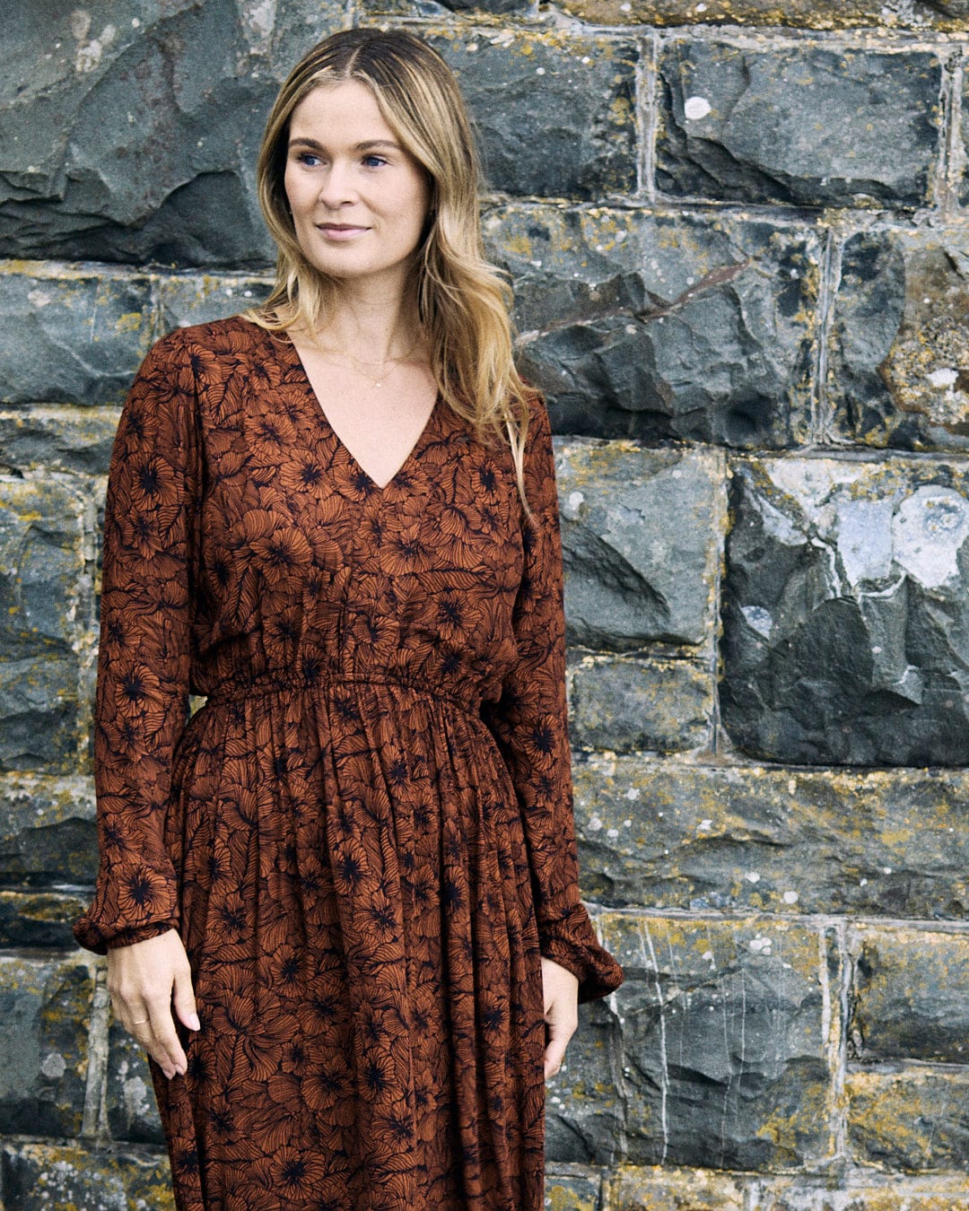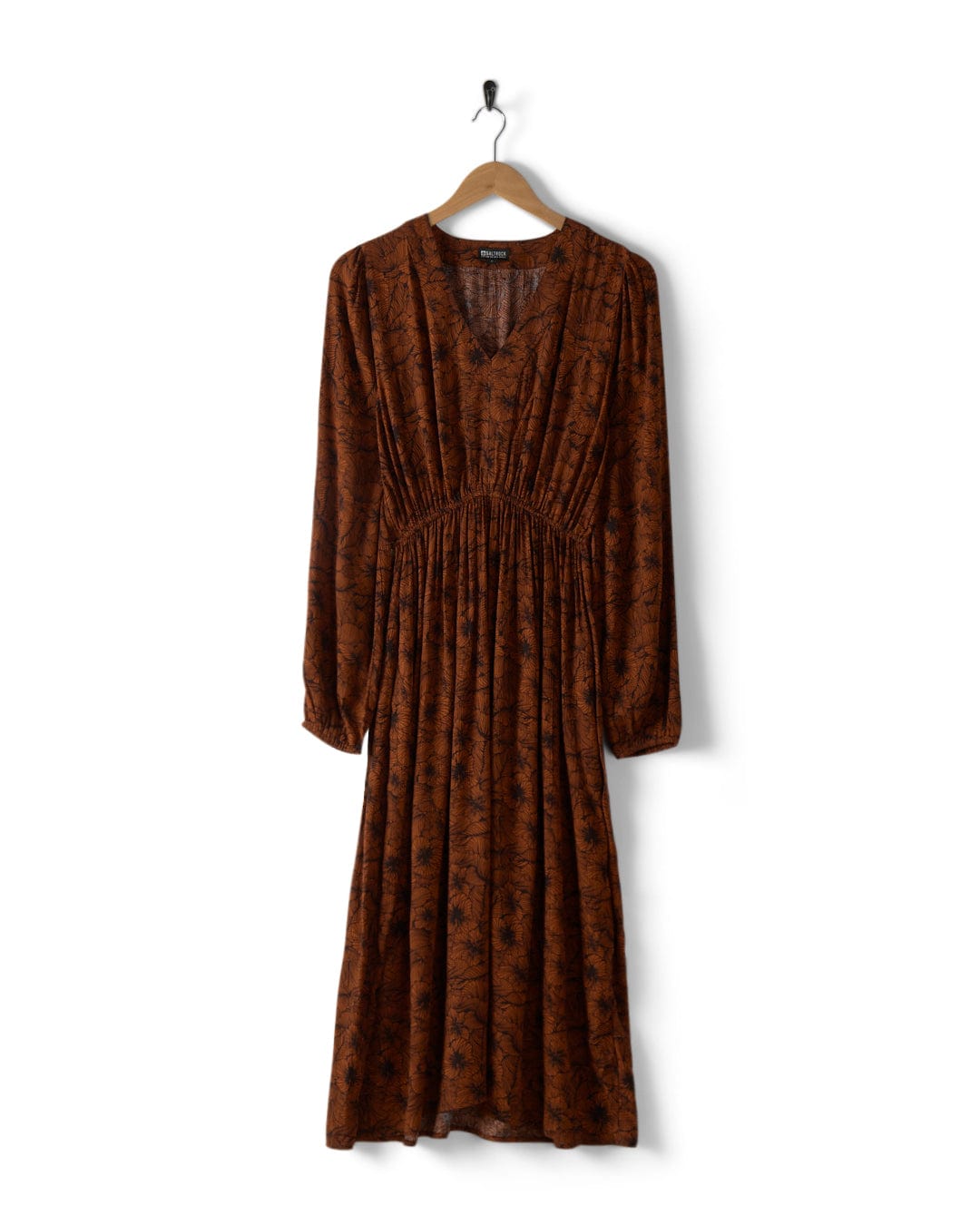 Lowry - Womens Midi Floral Dress - Dark Orange
