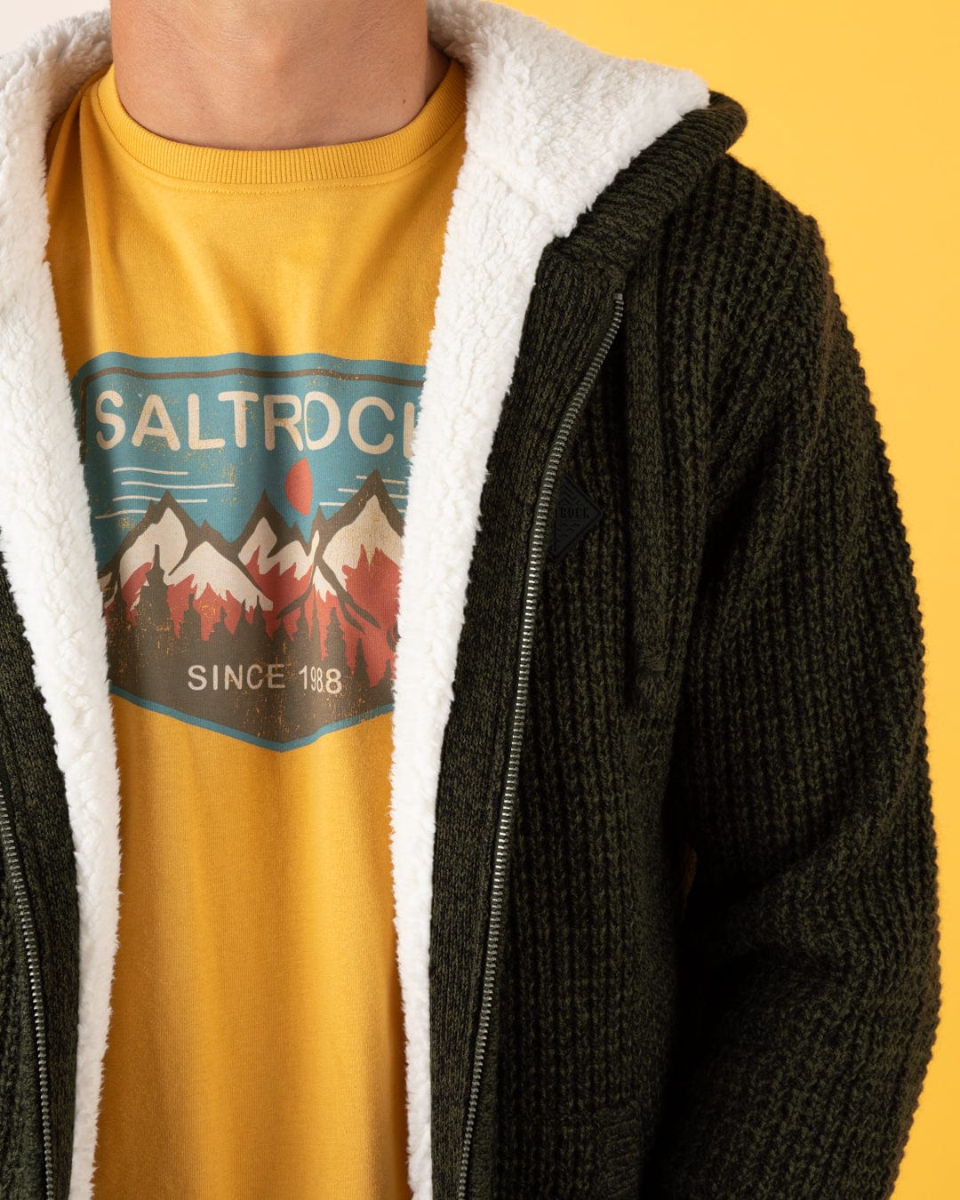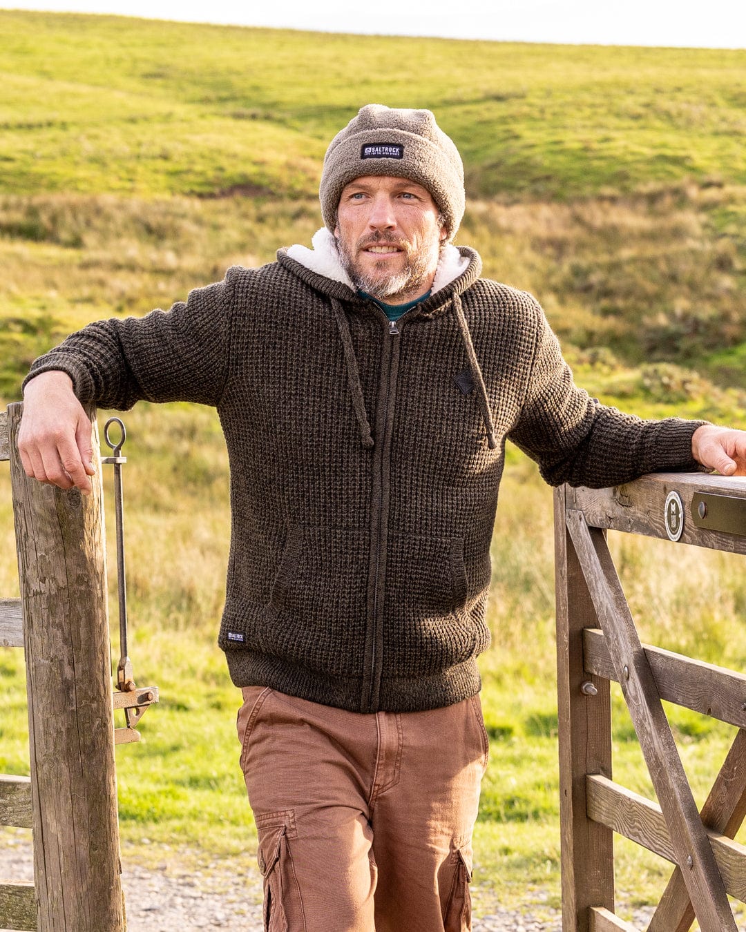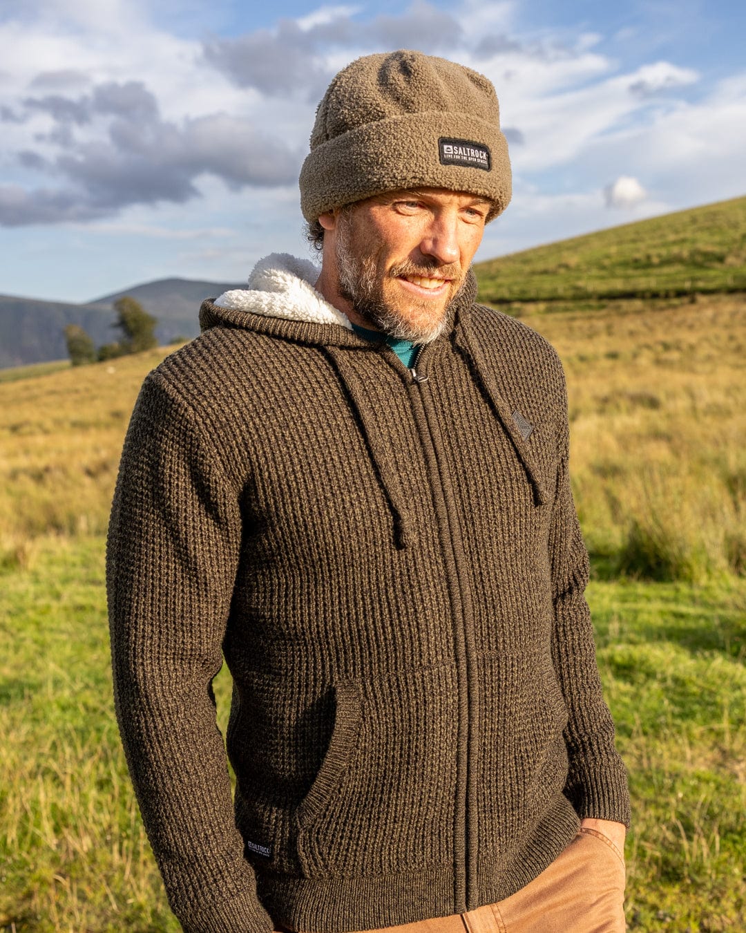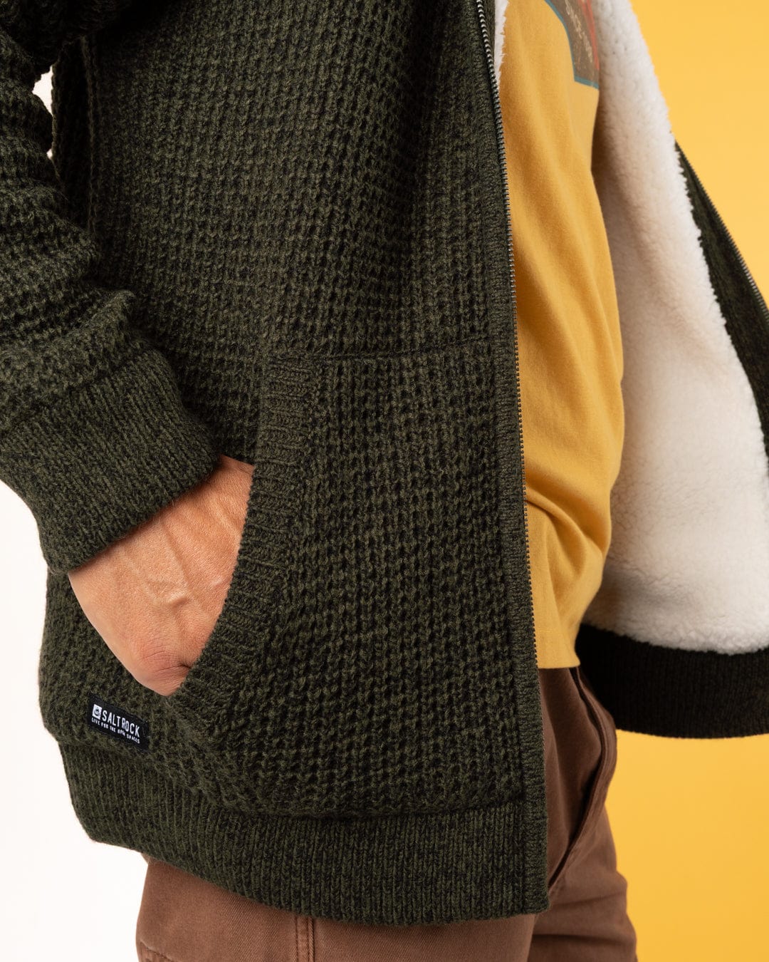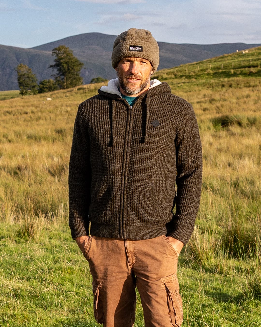 Markus - Mens Borg Lined Knitted Zip Hoodie - Green