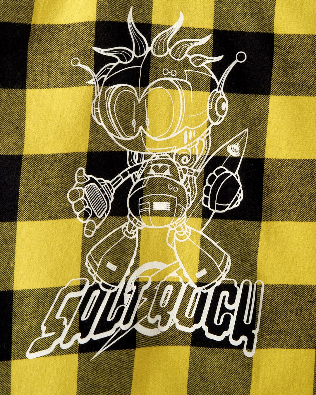 Pit - Kids Oversized Flannel Shirt - Black/Yellow