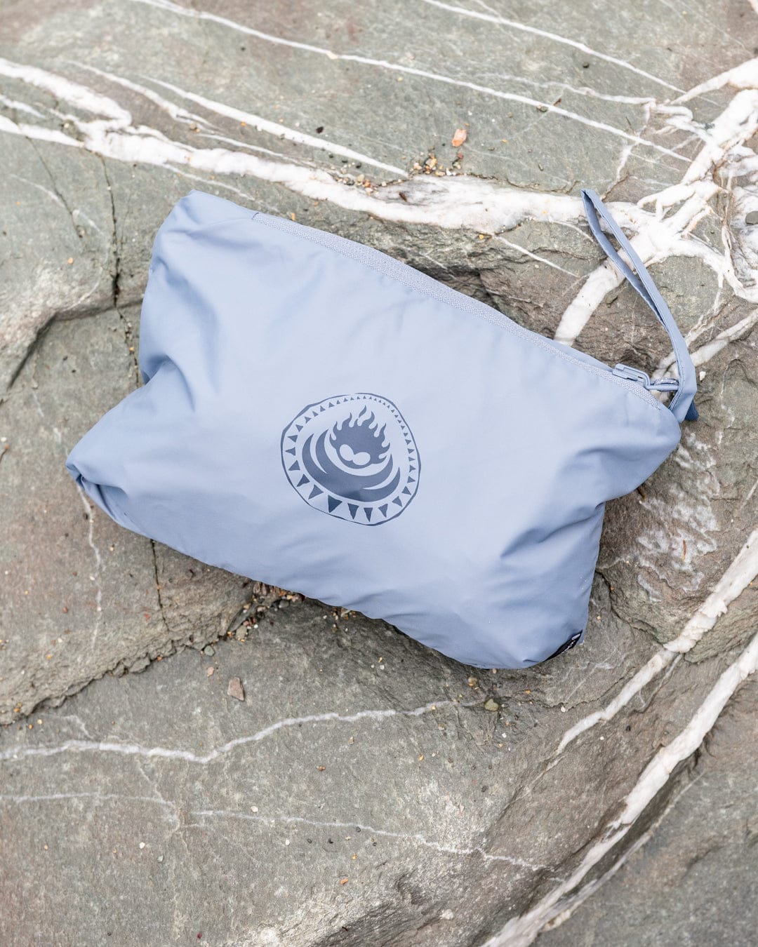 Rainer Tribal Mens Waterproof Packable Rain Jacket in Blue/Beige