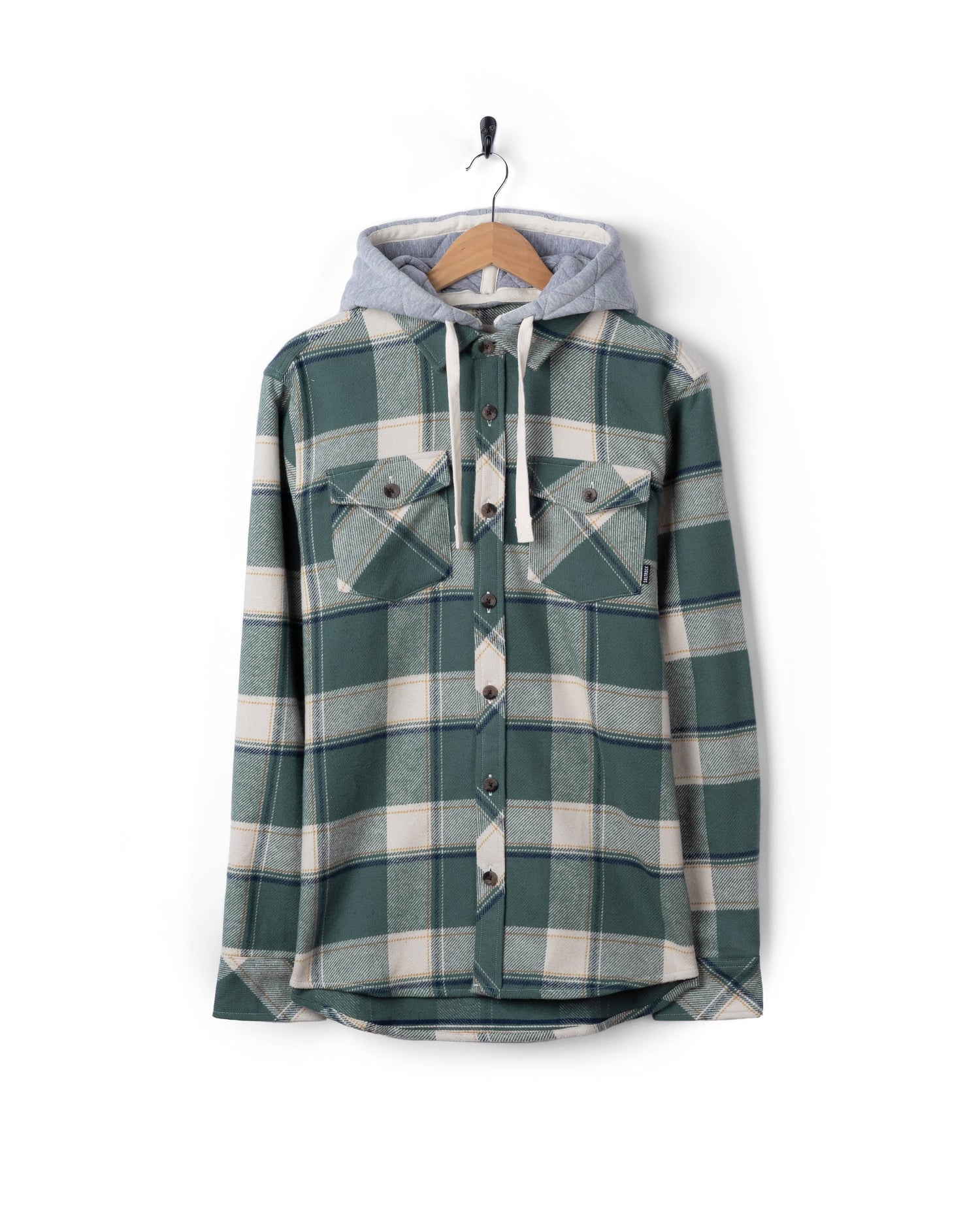 Strait - Mens Hooded Flannel Shirt - Green